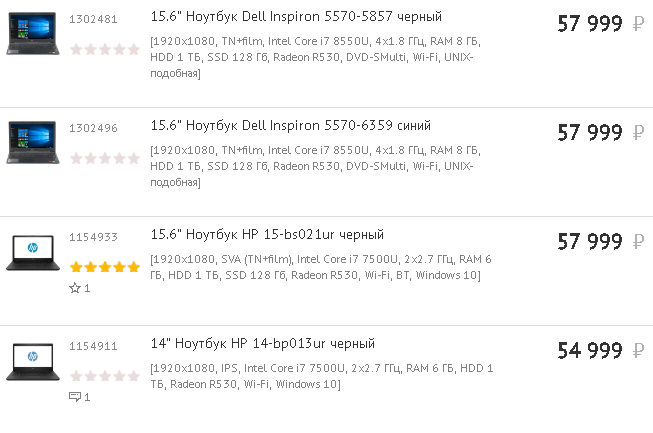 Самое время подобрать аналог нашего устаревшего Asus ROG G74S - заходим в интернет-магазин и делаем фильтрацию: