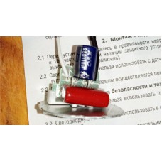 Перед этим конденсатором находится предохранитель (или резистор с низким сопротивлением), для экстренного размыкания (в случае поломки), а параллельно - резистор с высоким сопротивлением, для разрядки накопленной энергии, когда лампа выключена.
