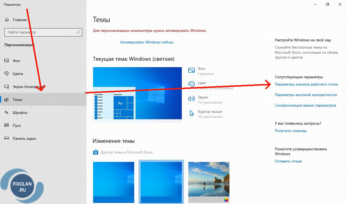 - справа, щелкаем на «Параметры значков рабочего стола»;